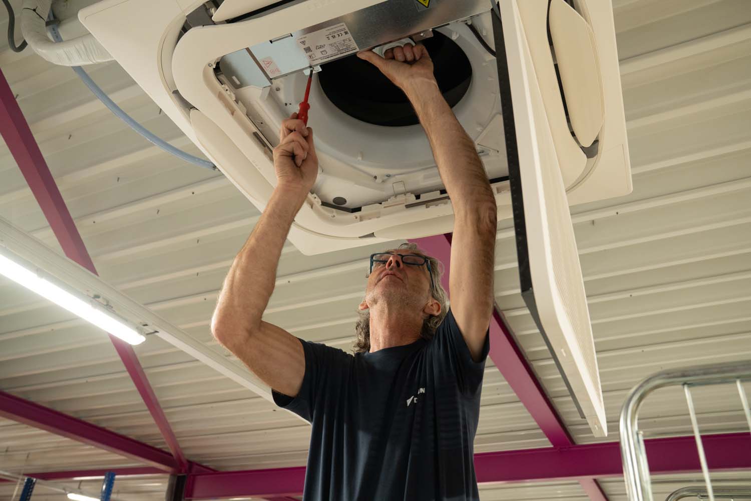 Frank Göttgens Installatietechniek heeft samen met Daikin  een efficiënte oplossing gerealiseerd. Hoewel chocoladefondue heerlijk is, wil je dat natuurlijk niet in je magazijn aantreffen! Daarom is er bewust gekozen voor 10 afzonderlijke Daikin Alpha Sky Air single split-units van elk 14 kW.